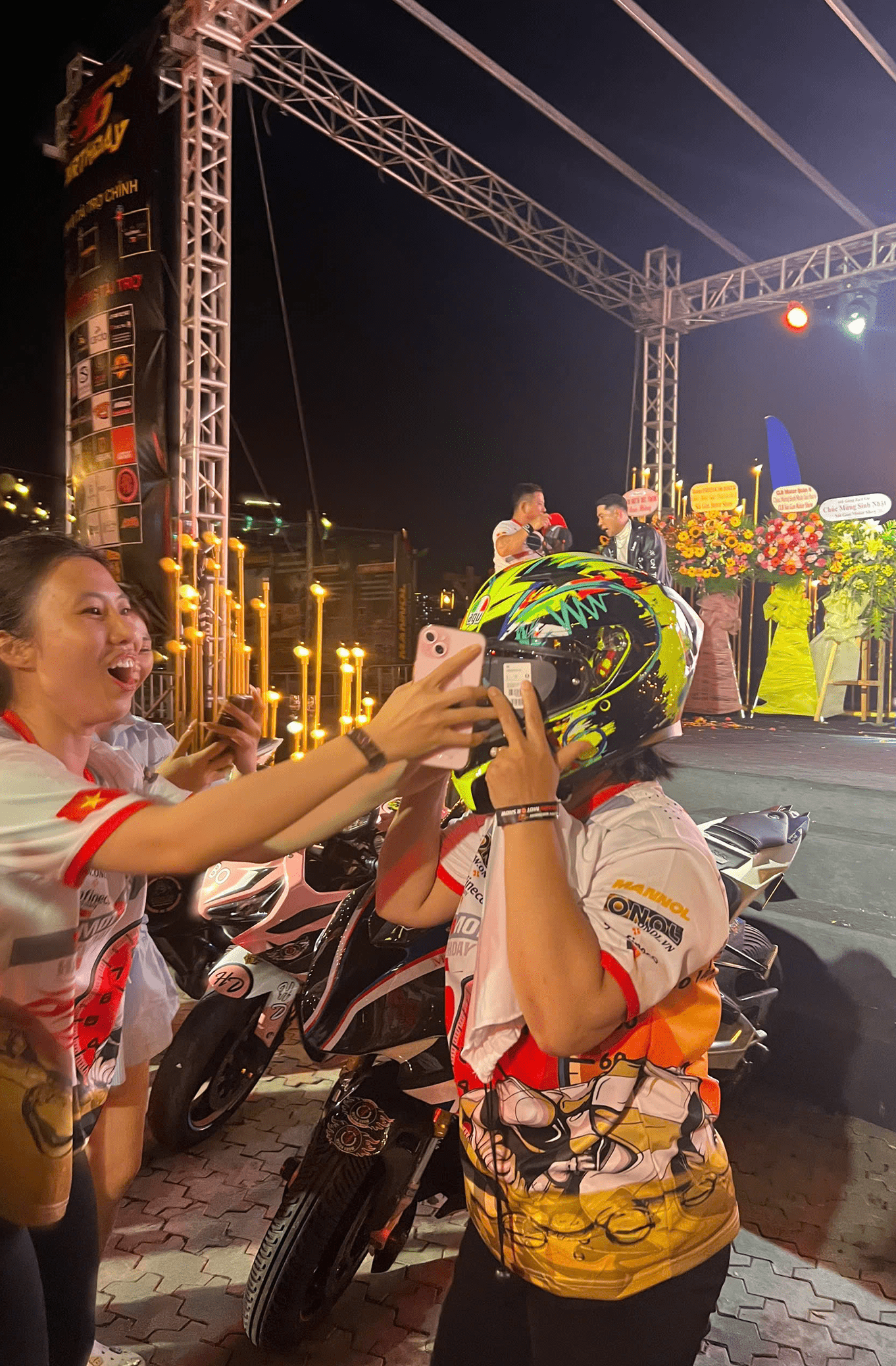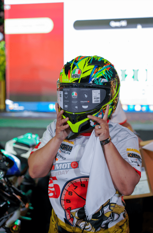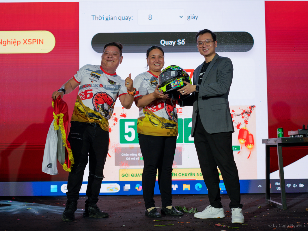 - Chương trình quay số trúng thưởng: Một biker may mắn đã giành được mũ bảo hiểm AGV cao cấp, mang lại niềm vui và sự bất ngờ trong không khí sôi động.